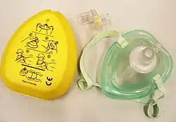 CPR adjuncts come in a variety of forms, from small keyrings with a nitrile plastic shield, up to a fitted rescue 'pocket mask' complete with oxygen inlet, such as the one pictured.