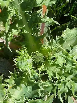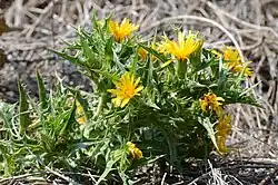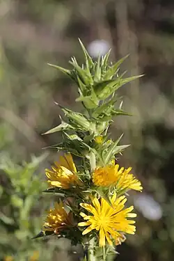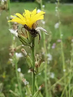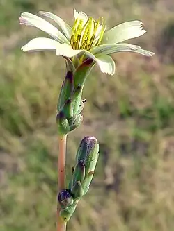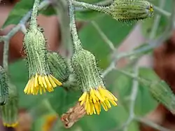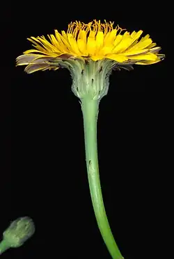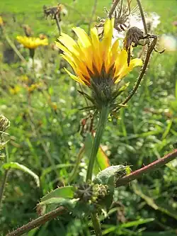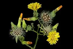 | The members of the Cichorieae have white latex and most have flower heads with perfect 5-dentate, mostly-yellow, ligulate flowers.[1]