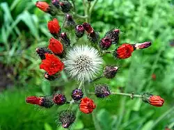 Orange hawkweed, Devil's-paintbrush, King devil, Orange-red king devil, Fox and cubs Épervière orangée, Bouquets rouges, Marguerite rouge |