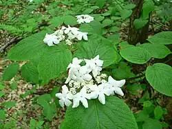| Dipsacales | Viburnaceae | Viburnoideae | Viburneae | Viburnum | hobblebush, nannyberry, arrowwood, possumhaw, cranberrybush | 19 |