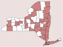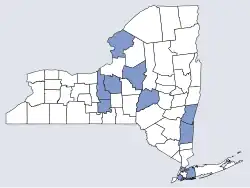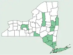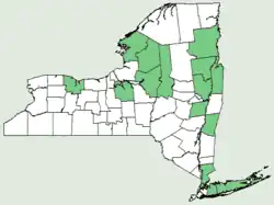 The Fabaceae (pea, bean or legume family) in New York has about 50 native or naturalized genera, together comprising about 150 taxa found growing outside of cultivation.[1]