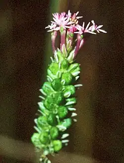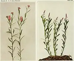 | Of the Polygalaceae (milkwort family), only the genus Polygala, with about a dozen taxa, and Polygaloides, with a single species, are found outside of cultivation in New York. All of these taxa are native to the region, but many are rare or presumed extirpated.[F 1]