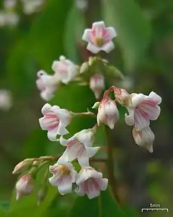 | Although a number of extinct Eucommia species were native to North America, the only living species, Eucommia ulmoides, is native to central China but has been planted worldwide. It is known for being a very cold-tolerant rubber-producing tree. It has been reported as naturalized in Indiana and Ohio, but not in New York State.[1]