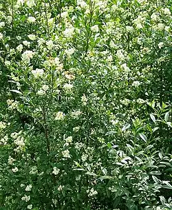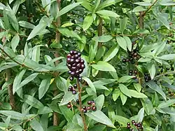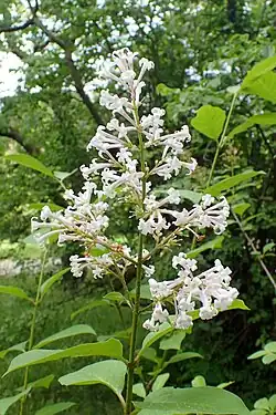The Oleaceae (olive family) in New York consists of a handful of native and introduced ash trees, along with a number of non-native shrubs, some of which, primarily the privets, are extremely invasive and create dense thickets. Interestingly, the olive family does not include Elaeagnus species (Russian olive and autumn olive), which are also common alien invasives but are categorized in the Elaeagnaceae (oleaster family) in the Rhamnales.[1][2]
