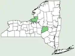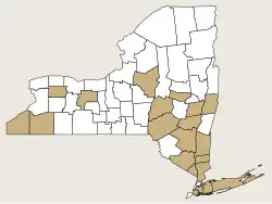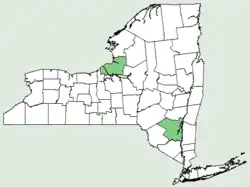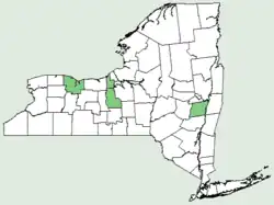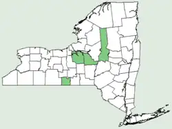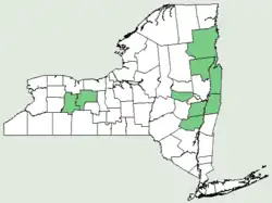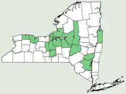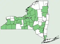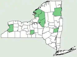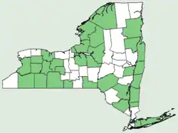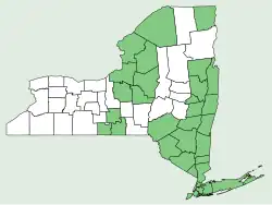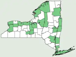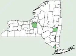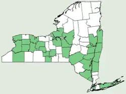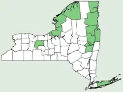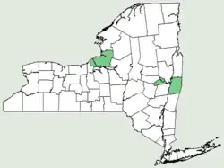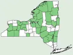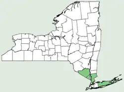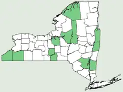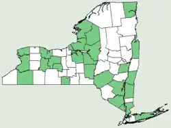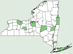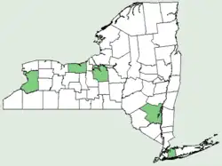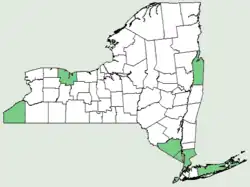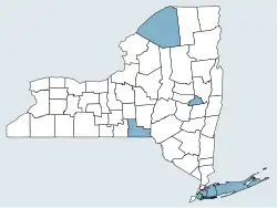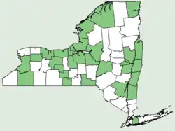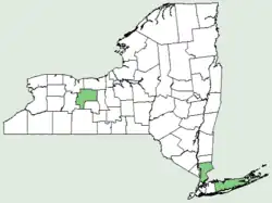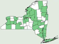 Vitex rotundifolia (beach vitex) is listed as potentially being highly invasive in New York. It was introduced in the southeasterm US for beach stabilizaiton but is now banned in most areas,[1] including New York State.[2]