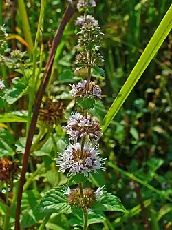 1. The USDA-NRCS PLANTS database and ITIS treat Mentha canadensis as a synonym of Mentha arvensis, while the New York Flora Atlas and ARS-GRIN treat them as separate species.