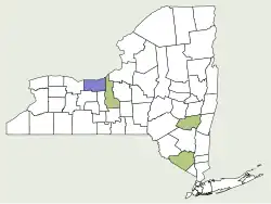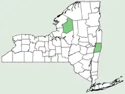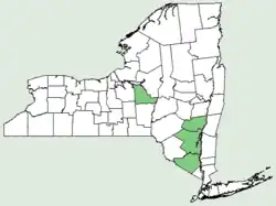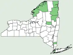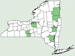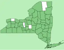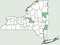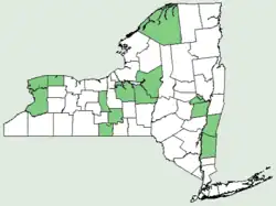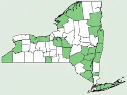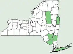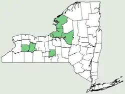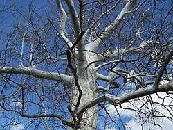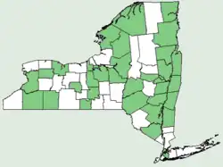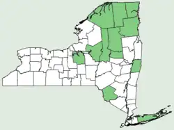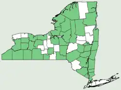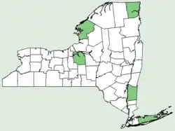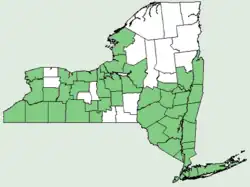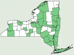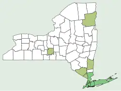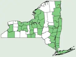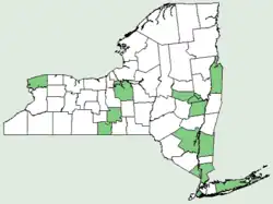 The Platanaceae (sycamore family) is represented in New York by the native American Sycamore and the London plane tree, which is probably a hybrid of the American Sycamore (Platanus occidentalis) and the Oriental plane (Platanus orientalis) from Eurasia.[1] Although widely planted as a street tree, the London plane tree is not known to naturalize extensively in New York.