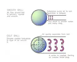 - Dimples create turbulence in the layer of air around the ball. This results in smaller vortex.