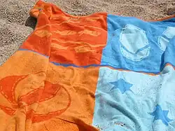 | la serviette (de plage) | (beach) towel | also: napkin | Chérie, passe-moi la serviette, j’ai du savon dans les yeux ! | Honey, pass me the towel, I have soap in my eyes! | |