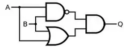 A logic circuit is an electronic circuit which includes one or more logic gates. Below is an example of a logic circuit together with its logic table: