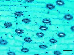 Turgor is used to control the opening and closing of stomata, the pores on the underside of leaves. The stomata are surrounded by guard cells that can become turgid or flaccid. Stomata allow carbon dioxide into the leaf and water to escape through evaporation. They can control the rate of water loss from the plant. They also control transpiration where water loss from the leaves due to evaporation causes the flow of water and fresh minerals up the plant.