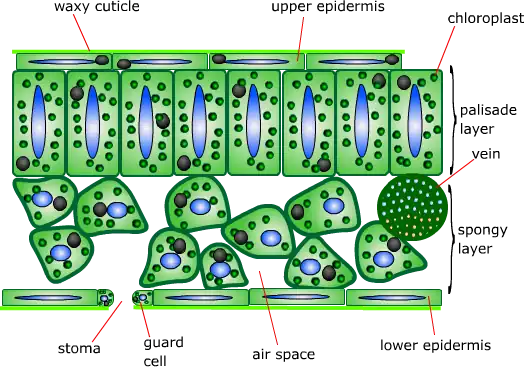 - The spongy layer has air spaces to make it easier for gases to circulate in the leaf.