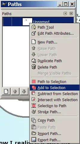 Move back to the dialogues window again, and click the Paths tab. Right-click the uppermost path on the stack and select Add to selection.