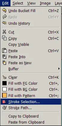 In order to create a smoother border, first click Select > To Path. Then, click Edit > Stroke Path.... Proceed as stated in the previous paragraph.