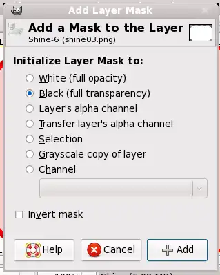 Then go to the gradient tool and select linear white to black gradient, (make sure you are editing the layer mask-- it should have a white border around it in the layers dialogue), draw a gradient from wherever you want the shine to start (Top-left corner in the example) to about the middle, feel free to experiment.