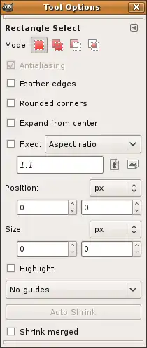 - Auto Shrink - shrinks the selection to the nearest rectangular shape available on the image layer