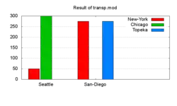 The above MathProg statements (inserted before the data statements of transp.mod and saved as a file named transp1.mod) will create, using the command glpsol --math transp1.mod, the following content in the file transp1.dat: