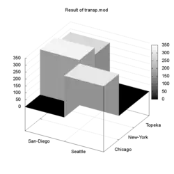 3D histogram generated with gnuplot from a GLPK solution