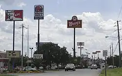 Billboards along a highway. Note the orientation of the billboards for best visibility.