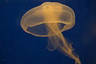 A semitransparent jellyfish. Note the increased opaqueness at the silhouettes.