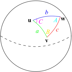 One can use the principles of spherical trigonometry as applied to triangles on the celestial sphere to derive formulas for transforming coordinates in one system to those in another. These formulas generally rely on the spherical law of cosines, known also as the cosine rule for sides. By substituting various angles on the celestial sphere for the angles in the law of cosines and by thereafter applying basic trigonometric identities, most of the formulas necessary for coordinate transformations can be found. The law of cosines is stated thus: