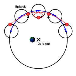 Viewing Earth as the center of our universe, many of the planets in our solar system take on a peculiar motion across the night sky. For instance, Mars appears to move in a retrograde fashion from time to time. Since the geocentric model holds that all the planets in our solar system orbit the Earth, this would mean that from time to time Mars reverses its orbital direction only to resume it later. The Greek astronomer, Ptolemy, sought to explain this phenomenon with the use of epicycles - that is, small circular motions that planets orbiting the Earth followed on top of their circular orbit around the Earth. Astronomers from Greek times to the Enlightenment compensated for flaws in the geocentric model by adding extra layers of epicycles, until the system was so complex it became virtually unusable. Copernicus' heliocentric model, placing the Sun at the center with planets going around it rather than around the Earth, rid the universe of many of the epicycles that plagued astronomy at that time.