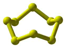 Sulfur behaves similarly to oxygen, but it has over 30 allotropes. The most common is S8. Sulfur is a yellow solid at ambient conditions. Sulfur is a part of many organic and inorganic compounds. Sulfur is part of some proteins necessary for life.