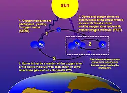 | Chlorine radicals will become stable by "stealing" an oxygen atom from ozone. | |