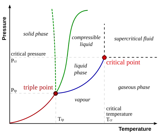 If the temperature and pressure change and move across a line in the diagram, the phase will also to change. There are six ways this can happen: