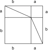 since each side's length is (a+b). Look at the tilted square in the middle. Its area can be written as: