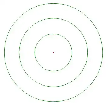 Concentric Circles share the same center, axis or origin with one inside the other. Concentric Circles do not necessarily have the same radius.