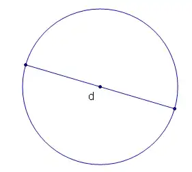 Diameter is a line segment connecting 2 points on the circle and goes through the center.