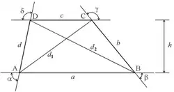, where a and b are the lengths of the 2 parallel sides and h is the height.