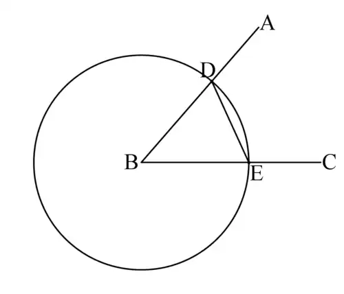 1. Use a compass to find points D and E, equidistant from the vertex, point B.