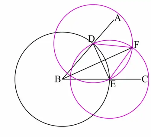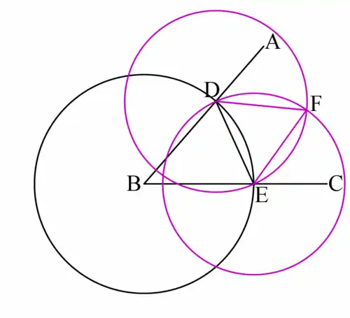 3. Construct an equilateral triangle on with third vertex F and get . (Lines DF and EF are equal in length).