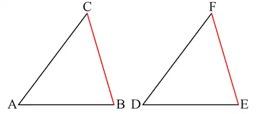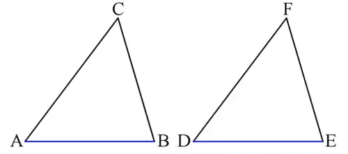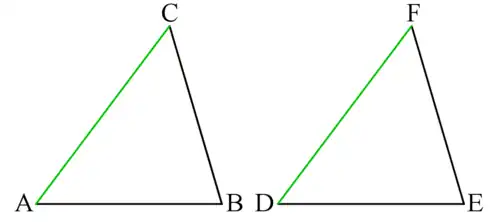A triangle whose vertices are A, B and C will be noted as . Note that for the purpose of triangles' congruence, the order of vertices is important and and are not necessarily congruent.