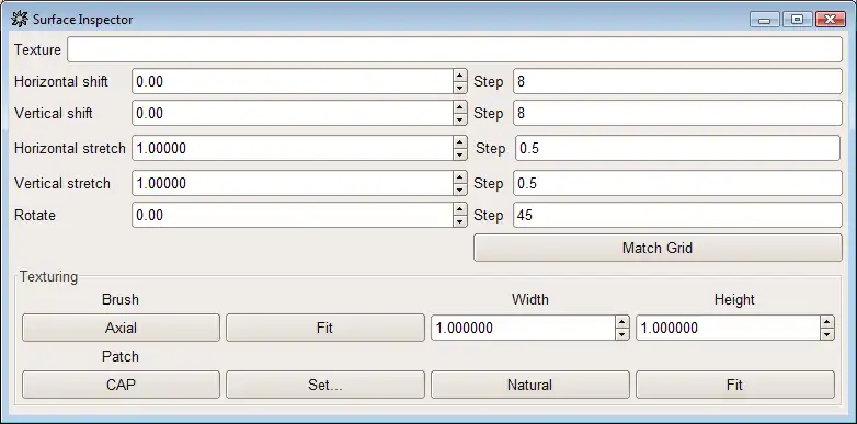 The Surface Inspector and the Texture Browser are the tools you will be using when texuring your maps. To use the Texture Browser, simply press T. To bring up the Surface Inspector for a surface, select a brush or surface and press S.