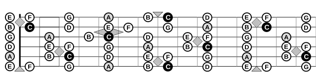 However, the entire scale across the entire fingerboard is a bit too much, so we'd better divide it into smaller, useful sections.