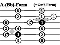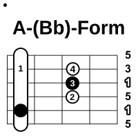 Speaking of jazz chords; We assume that you initially prefer the barre chords of the E and A forms for finding the root tones and will therefore focus more on these. Later, the other chord shapes that you get to know with your repertoire in fingerstyle and jazz will also serve as your orientation.