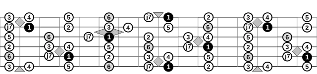 So all you have to do is move the scale back and forth on your fingerboard until the "1" is on the root note of your desired major scale, then you can use the scale.