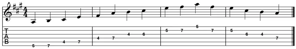 A-B-C-D-E-F#-G#-A (ascending) A-G-F-E-D-C-B-A (descending)