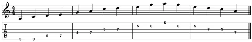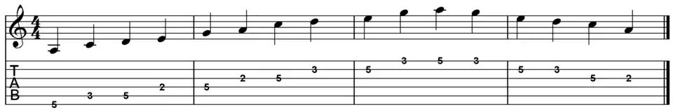 When you are learning any scale, it is helpful to break it down into smaller chunks, which can be practiced and memorized much more easily. With the A minor pentatonic scale, it is most commonly broken down into these sections.