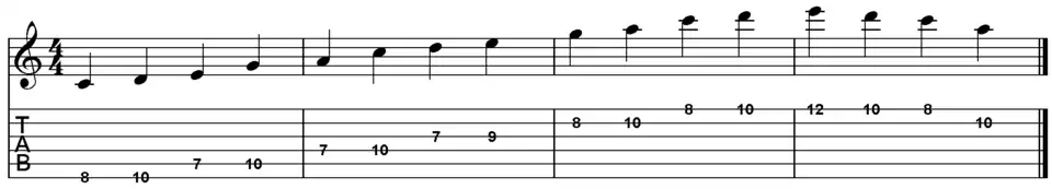Practice this the same way you practice the minor pentatonic scale. When you feel completely comfortable with both pentatonic scales, begin to explore the other different scales.