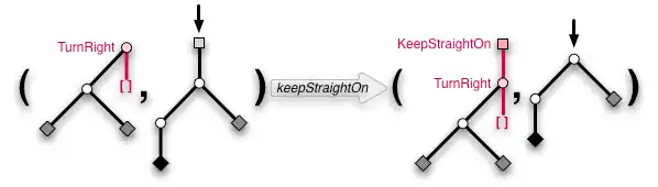 Theseus interrupts, "Wait, how would I implement this behavior as a function turnRight? And what about the first argument of type a for TurnRight? Ah, I see. We not only need to glue the branch that would get lost, but also the extra data of the Fork because it would otherwise get lost as well. So, we can generate a new branch by a preliminary"
