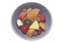 The fruit food group includes fresh, canned and dried fruit, as well as fruit juice. The Australian Guide to Healthy Eating recommends that like with vegetables, a variety of different coloured fruit is eaten. Both males and females aged 19-50 years old are recommended to eat 2 serves from this food group per day.