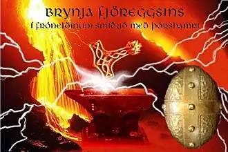 - Brynfjöregg: The armored fjöregg (vital egg). A 'vital egg' (fjöregg) is the equivalent of a ‘life-thread’ in Icelandic symbolism. It is a familiar motif in Icelandic folklore, where one can destroy trolls, giants, etc., by finding where their "life-egg" (fjöregg) is hidden and hurling it at them so that it hits them in the face, or on the temple or nose, or (most frequently) between the eyes or on the forehead. These life-eggs came in a variety of colors, some were golden. Many Icelanders still consider their language as the ‘vital egg’ of their culture. When it breaks, the thing it symbolizes dies. The High Icelandic ‘brynfjöregg’ is composed of two viking-helmets forming an oval armor around the egg, symbolizing language protection.