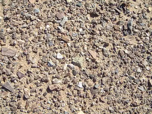 - Rocky, pebbled surface created as finer silts and clays are removed by wind.