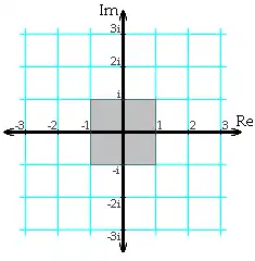takes a point in the complex plane and shifts it up by 1. If we apply it to the set of points making up the square above, it will move the entire square up one, so that it "rests" on the x-axis.