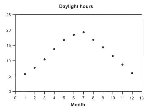 - (c) How might the graph look different if the data represented daylight hours where you live?