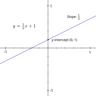 The slope of the line is the coefficient , and the y-intercept is the constant 1.